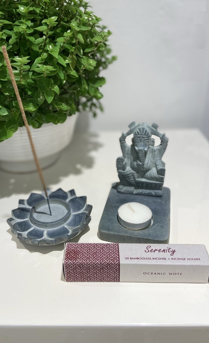 Drie ingrediënten: een steen, heilighout, een kruidenbundel.