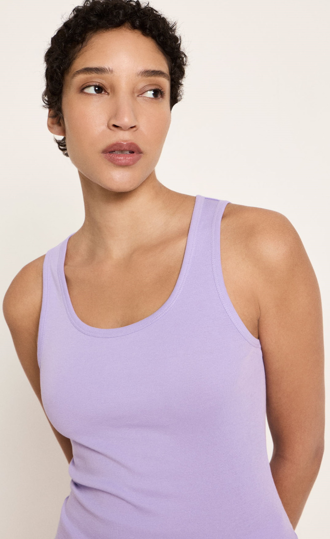 The feminine round neckline and the close-fitting yet comfortable cut make it a timeless everyday essential.