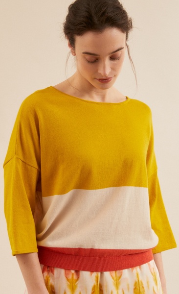 Wide styled fijn gebreide trui van zachte 100% biologische katoen.