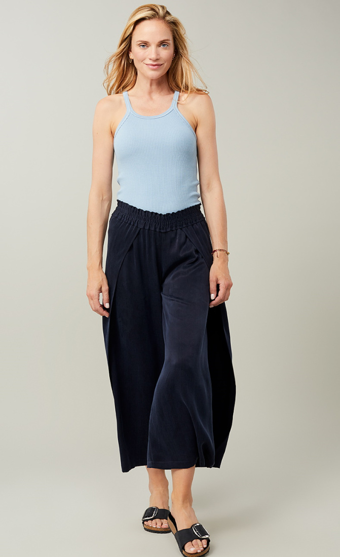 Klassieke ronde hals met smalle straps en lichte racerback.