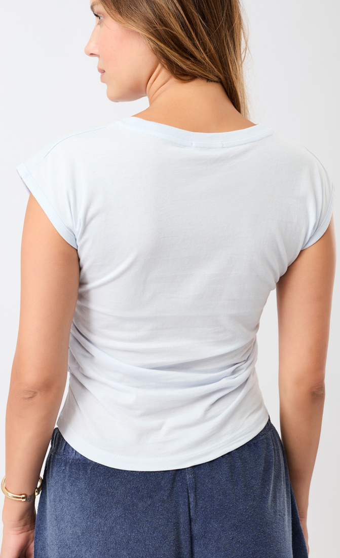 De nieuwe versie van de populaire ruffled top. De nieuwe variant heeft een cap mouwtje.