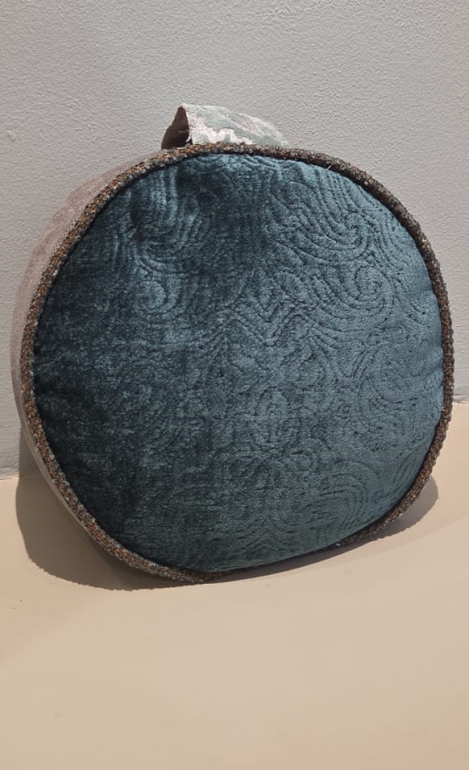 Uniek en exclusief mediatiekussen van velours en linnen.