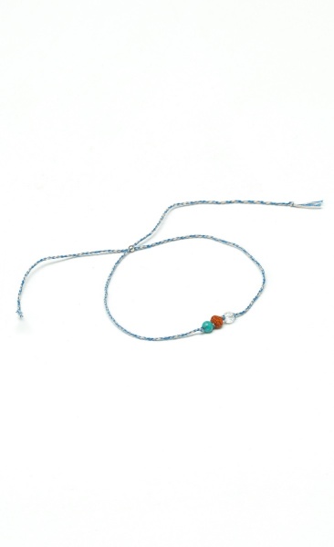 Armbandje op enekele draad die je met een tangetje vast kan knijpen of knopen. Draad rekt op den duur niet uit, dus maak niet te strak vast. Het draad bestaat uit helder blauwe en witte draden die met de hand in elkaar zijn gedraaid. Zeer sterk en stevig. Wordt verstuurd in leuke cadeauverpakking.