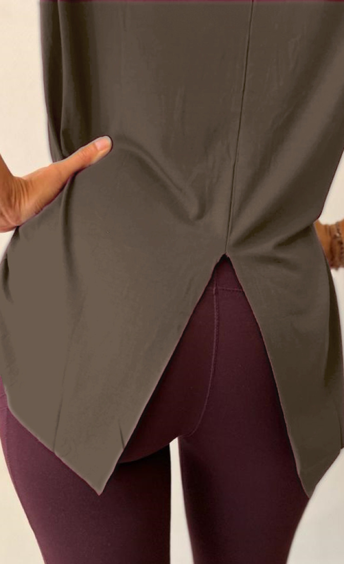 Heeft een cap mouwtje en is aan de voorkant half rond gesneden zodat het net wat mooier valt, lang over de heup zonder massief te zijn.