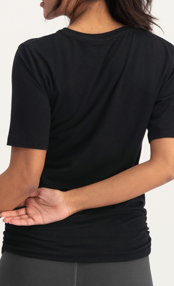 Dankzij de goed aansluitende heupband blijft het shirt altijd op zijn plek, of je nu in een krachtige Downward Dog zit of een vloeiende Vinyasa uitvoert.