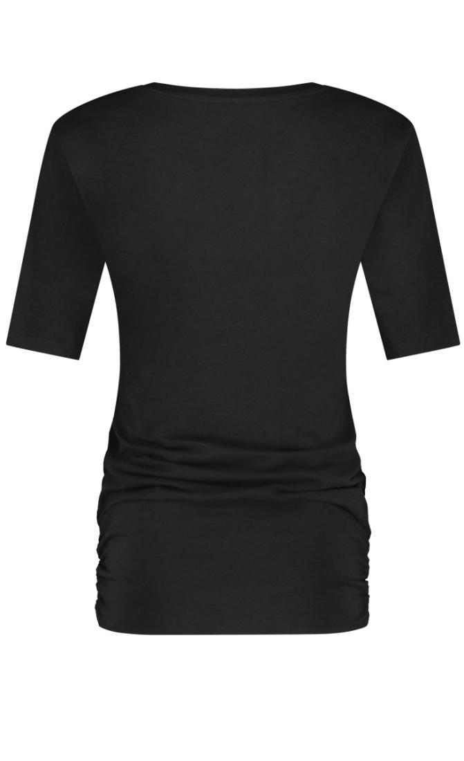 De Kami Yoga en Pilates Top heeft een tijdloos design met een (klein beetje squared) ronde hals en mouwen die net boven de elleboog vallen.